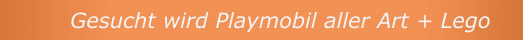 Von Playmobil suche ich komplette Sets oder Einzelteile. Insbesondere vor 1992 und natürlich auch danach. Bitte alles anbieten, da teilweise meine bereits vohandenen Sachen auch nicht immer vollständig sind. Auch ganze Sammlungen wären nicht uninteressant.